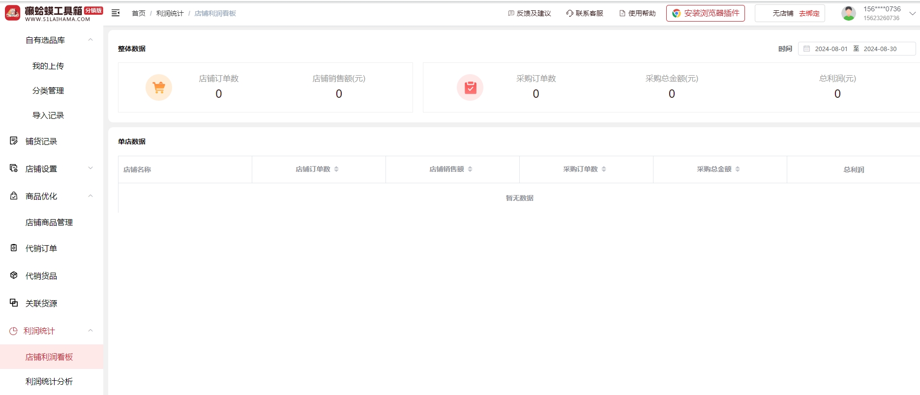 癞蛤蟆分销店铺利润分析功能,主要分为店铺利润看板、利润统计分析;